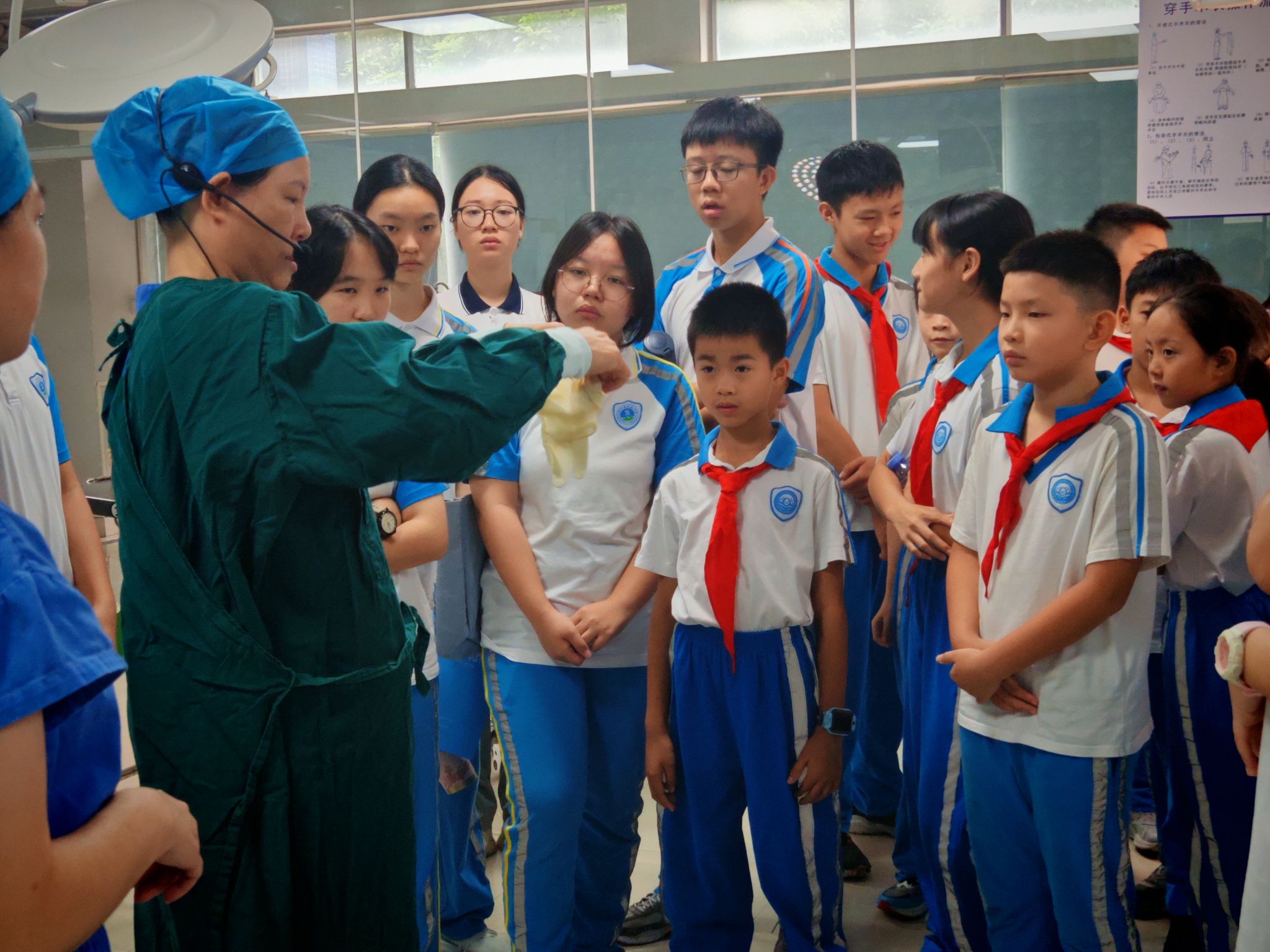 (中小学学生参观广东医科大学技能培训中心)