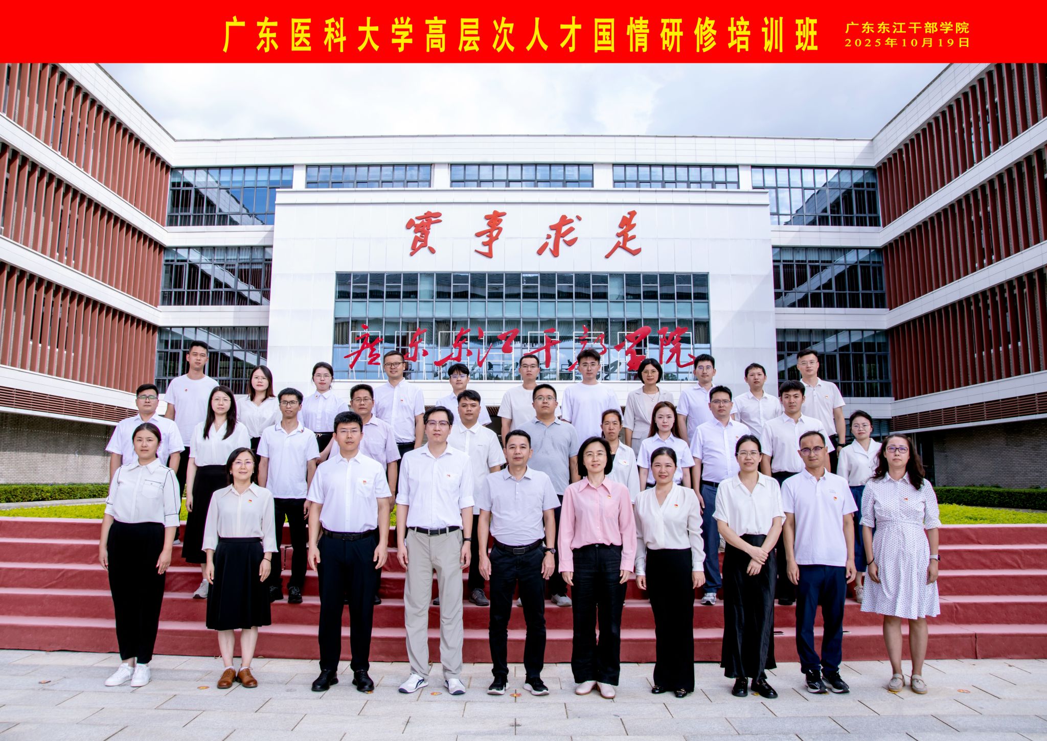 为深入学习贯彻习近平总书记关于做好新时代人才工作的重要思想,强化对高层次人才的政治引领,10月19日至22日,广东医科大学高层次人才国情研修班在广东东江干部学院举行。本次研修班以“国情认知—战略把握—使命践行”为主线,创新采用“理论授课+现场教学+研讨共创”三位一体教学模式,为高层次人才精准赋能。学校28名高层次人才及优秀青年博士齐聚一堂,通过为期四天的沉浸式学习,实现了思想淬炼、能力提升与共识凝聚。