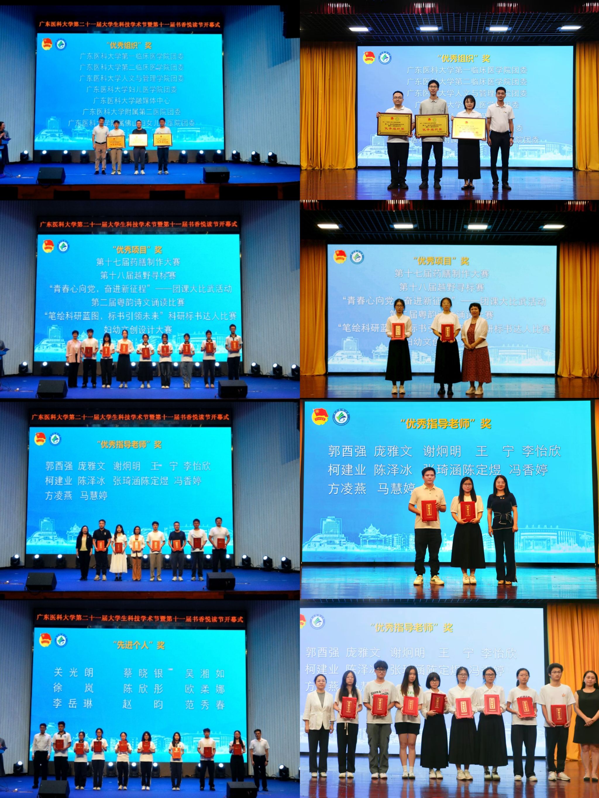 为落实精简办会要求,同时切实减少考试月活动数量,学校决定将上半年“双节”(第二十一届大学生校园文体艺术节暨第十二届生命文化节)颁奖仪式,合并至下半年“双节”(第二十一届大学生科技学术节暨第十一届书香悦读节)开幕式中。上半年“双节”活动中荣获“先进个人”“优秀指导老师”“优秀项目奖”“优秀组织奖”的代表们,依次登台领取荣誉证书。