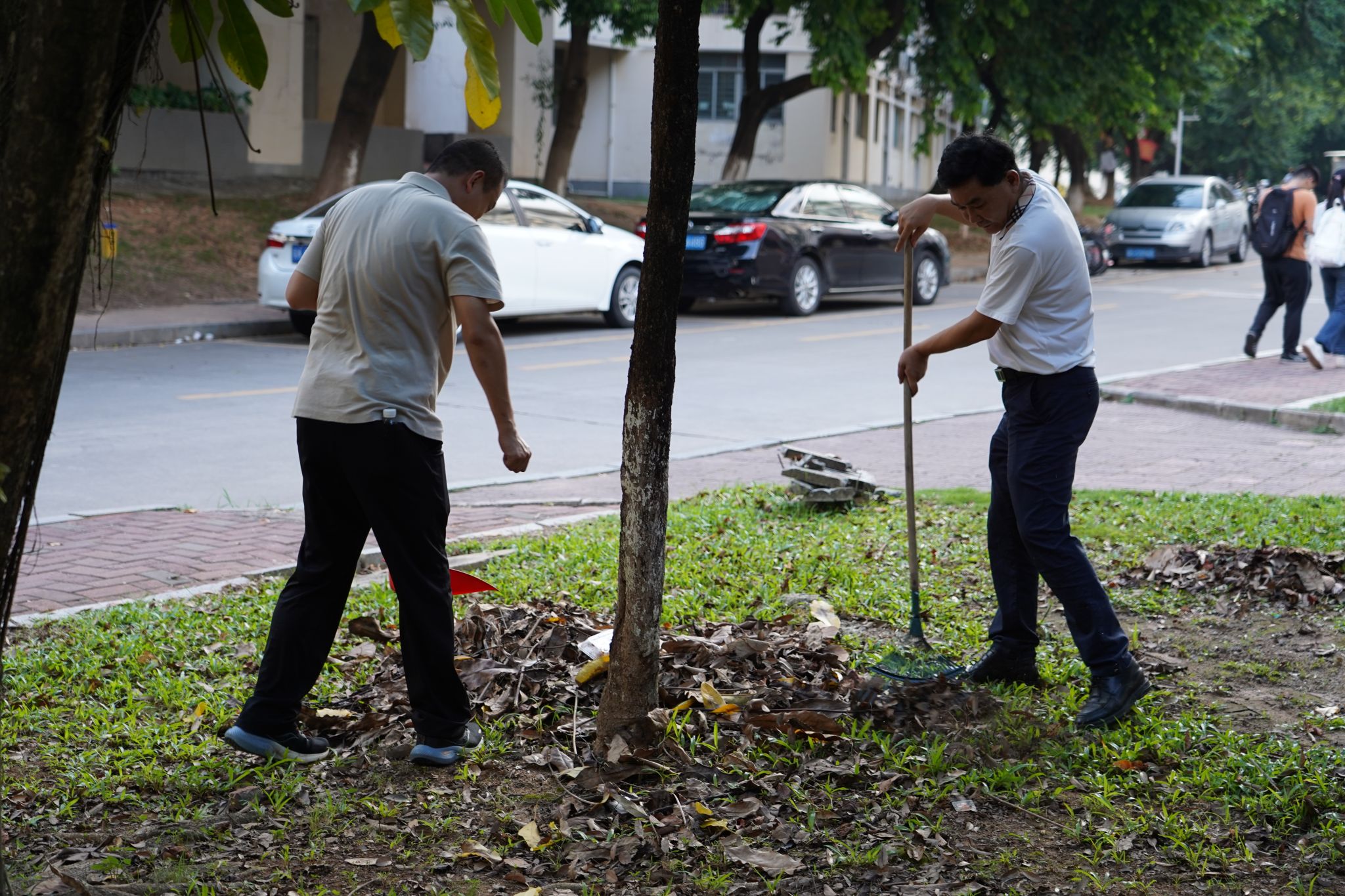 活动中,师生们分工明确、协作有序,重点对教学楼、宿舍区、公共绿地、天台等区域进行了细致排查与清理。大家手持清洁工具,清扫落叶、清除杂物、疏通沟渠、清理积水,不放过任何一个角落,展现了我校师生高度的责任意识与良好的精神风貌。