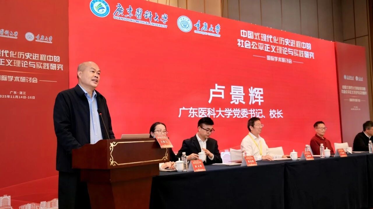 11月15日,“中国式现代化历史进程中的社会公平正义理论与实践研究”国际学术研讨会在湛江举行。来自中国社会科学院、湖南大学、重庆大学、美国中美后现代发展研究院、中山大学、复旦大学、中国人民大学、武汉大学、上海交通大学、兰州大学等100余所高校、科研机构等单位的170多位专家学者、师生代表齐聚一堂,为促进社会公平正义、推动中国式现代化建设献计献策。研讨会开幕式由广东医科大学党委副书记黄达海主持,广东医科大学党委书记、校长卢景辉,中国辩证唯物主义研究会公平正义研究专业委员会会长、重庆大学马克思主义学院院长冯颜利教授分别致辞。