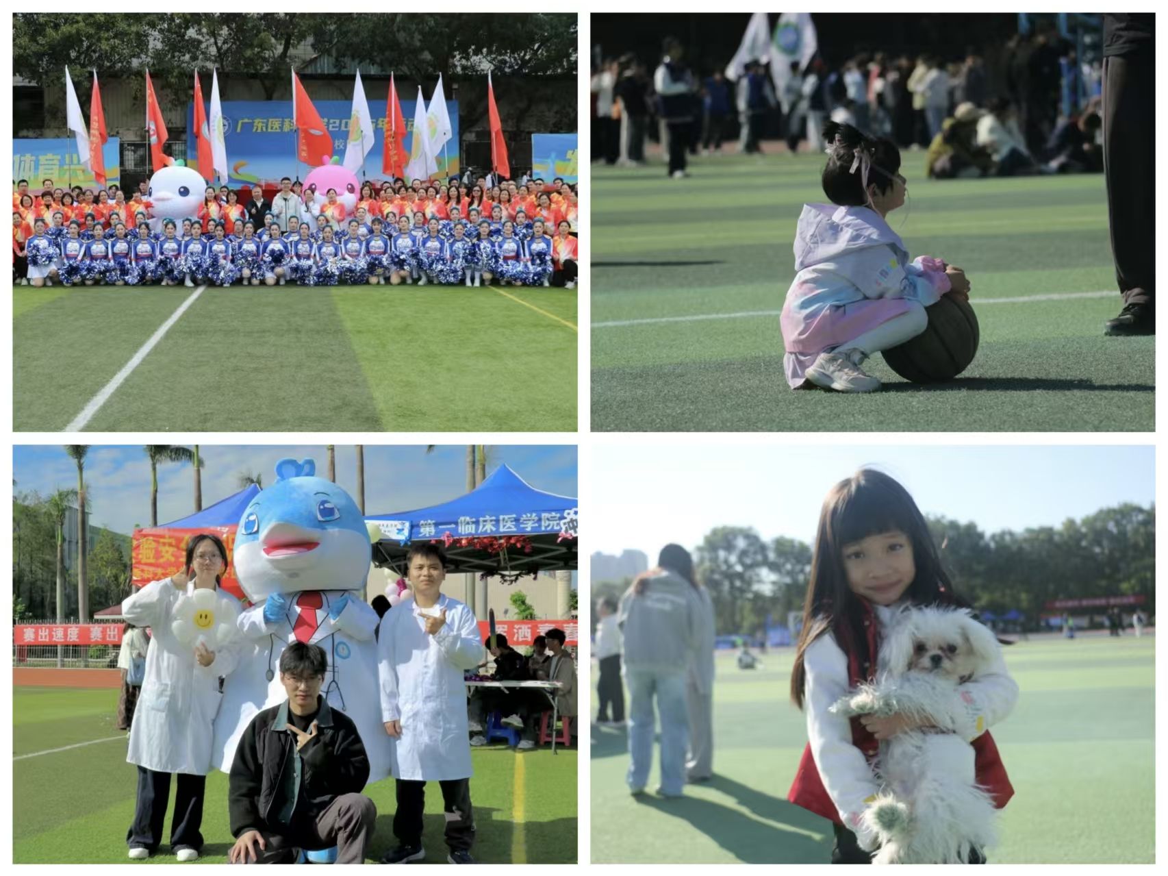 赛场内外,温情与奉献无处不在。志愿者们默默付出,裁判员们秉公执裁,确保了赛事顺利进行。第二临床医学院康复医学系师生发挥专业特长,为运动员提供贴心的赛后拉伸服务。观众们热情呐喊助威,特别是由第一临床医学院设置的“小海豚”玩偶互动点,吸引了众多师生合影,欢声笑语洋溢赛场。趣味运动项目中,团队成员们默契配合,在欢乐中凝聚了集体力量。