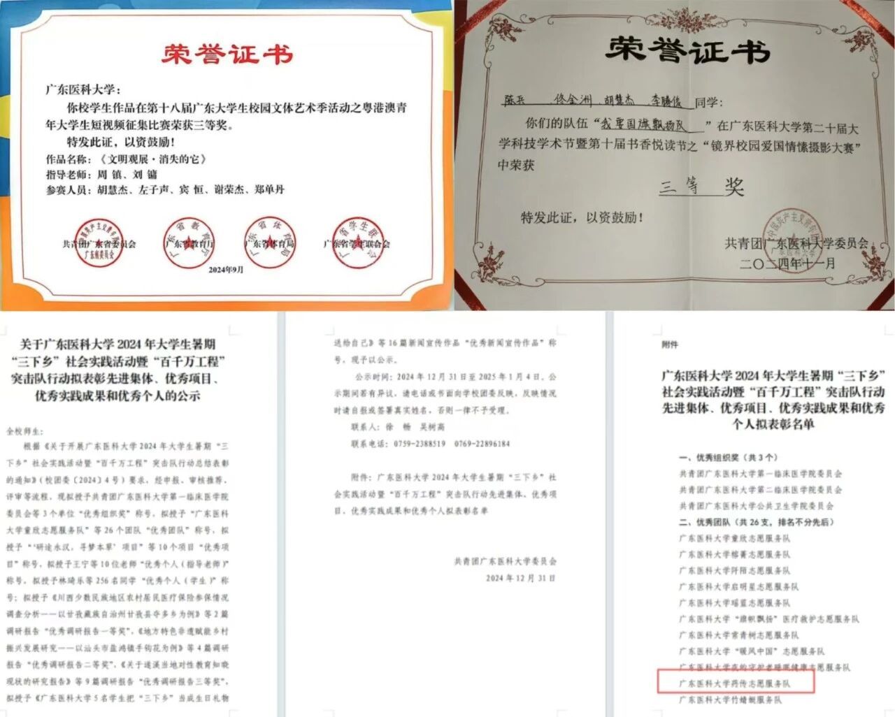 胡慧杰躬身实践,累计志愿服务时长675小时。在担任药传志愿服务队队长期间,他组织开展“医学支教”等实践活动73场,服务超8800人次,带领团队累计服务13752小时,获广东省“百千万工程”突击队优秀团队等17项荣誉,相关活动被国家级媒体报道31次、省市级37次,以实际行动诠释“医者仁心”的担当。