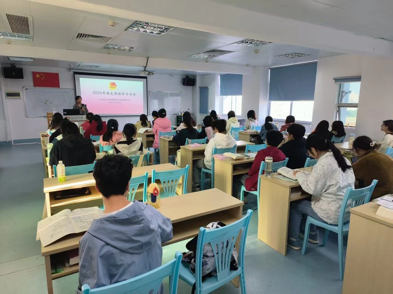 班级深谙思想是行动的先导,定期组织学习主题班会,夯实信仰之基。班级里有1名正式党员、1名发展对象、5名入党积极分子,还有13名同学正积极向党组织靠拢。团支书姚庆桦是其中的佼佼者,从优秀共青团员到预备党员,从青马工程优秀学员到带领支部获评先进集体,她用实际行动树起标杆。心理委员与班委也默默关注每位同学的情绪,定期开展心理主题班会,营造出一个温暖、包容的学习环境,让每一位同学都能在关怀中成长。